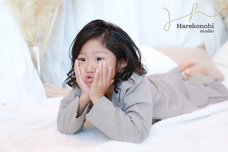 フォトスタジオで撮る子ども写真というと、笑顔の一枚を思い浮かべがちですが、名古屋市近郊の【ハレこの日スタジオ】では、すべての表情を大切にしています。