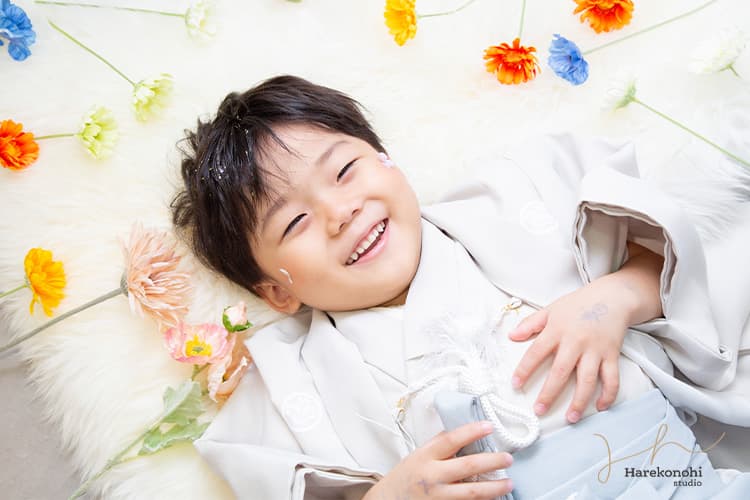 控えめに前髪やこめかみにワンポイントを加えつつ、小物やドライフラワーなどの素材と組み合わせて写真を撮ると、写真全体に統一感が生まれます。男の子の撮影でも、自然におしゃれ感覚で取り入れられるのが嬉しいポイントです。