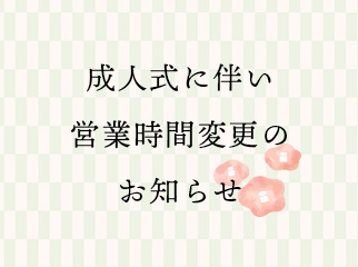 成人式に伴い、下記日程は営業時間を変更させていただきます。