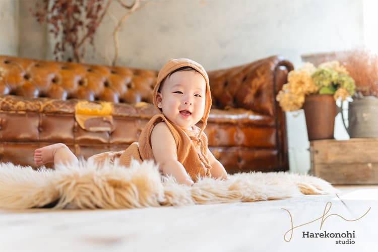 特に撮影に適しているのは、生後5〜7か月頃。寝返りやうつ伏せができるようになり、動きや表情が豊かになるため、写真のバリエーションも広がります。