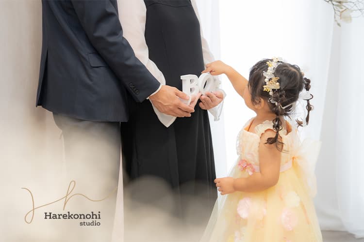 あえてパパママの顔を隠し、お子さまの目線にフォーカスすることで、よりフォトジェニックな一枚に仕上がっています。