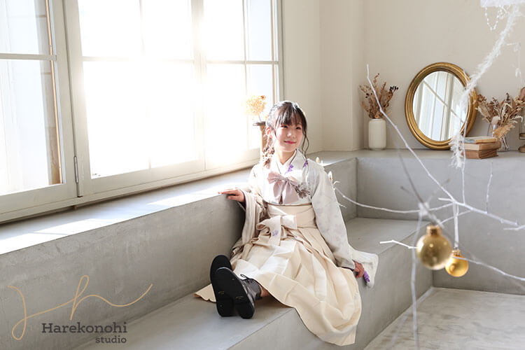 愛知県でハーフ成人式の記念写真を撮るなら、アットホームで貸切利用ができる【ハレこの日スタジオ】がおすすめ。家族みんながリラックスして撮影できる環境が魅力です。