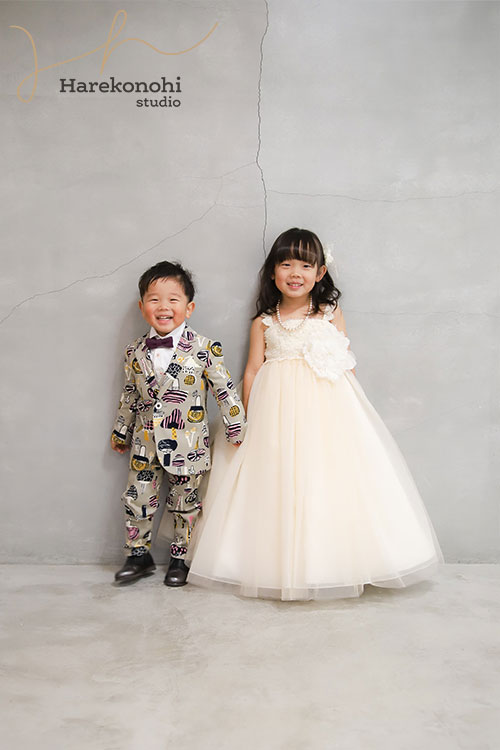 ごきょうだいが一緒の場合は、リンクコーデを楽しんだり、手をつないで撮ったりするのもおすすめ。名古屋市近郊の【ハレこの日スタジオ】では、ごきょうだい向けのカジュアル衣装を豊富にご用意しています。特別な1日を、家族全員で共有する瞬間を大切に残せます。